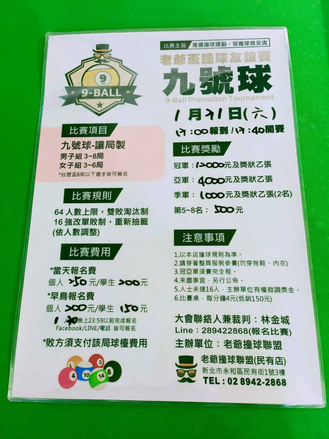 資料來源 : [Line]老爺撞球比賽報名處